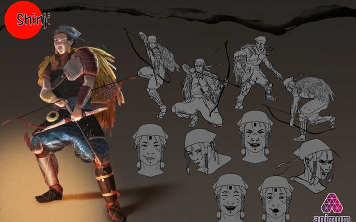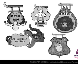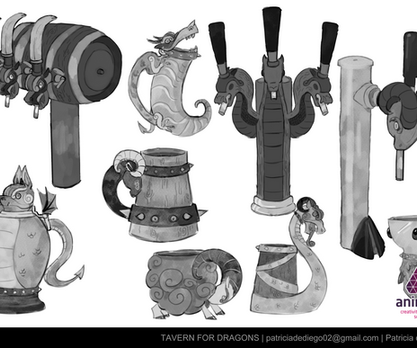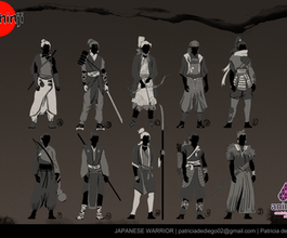 Concept art developed during my Master´s Degree: an ancient Japanese warrior a tavern for dragons and a jungle tribe.